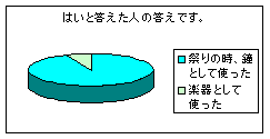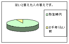 | ・Q7をくわしく書いている人が多かった ・意外と銅鐸のことを知っている人が多くてびっくりした ・大人の人も、子供の人も、全体的に「はい」と答えている人が多かった ・Q7の銅鐸の絵は特に鹿が多かった ・Q6は曜日も、きちんと書いている人がいた |