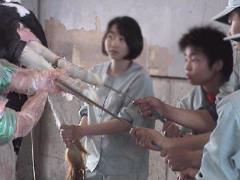 赤ちゃんはさかご。足から産まれようとしています。高校生さんが足にひもをつけて、ひっぱっています。