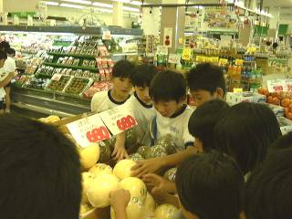 We went to the nearby supermarket "A Co-op" for "the place-of-production investigation of agricultural products" by social studies.