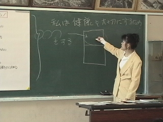 ![]() 「自分のテーマを紙に書きましょう。」 |